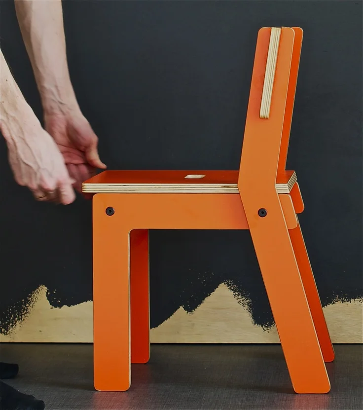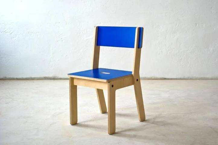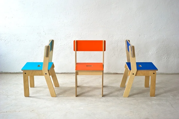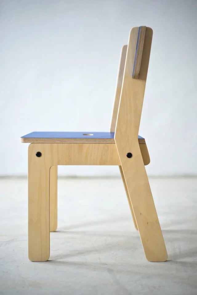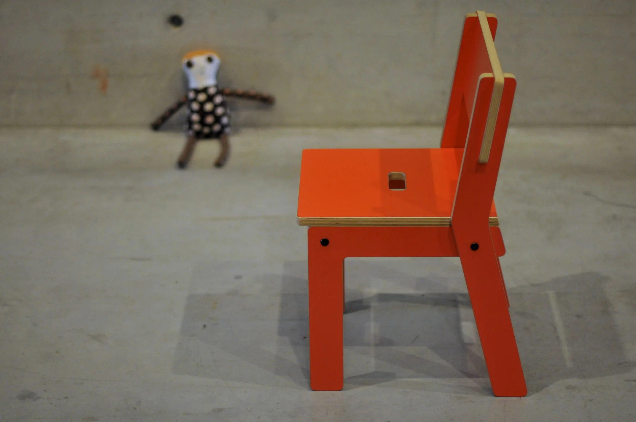 Kinkeli-sit er en god og solid barnestol i 15mm kryssfiner med tydelig sammenføyninger og et moderne estetisk uttrykk. Den fås med laminat på sete og rygg, eller hel laminert.