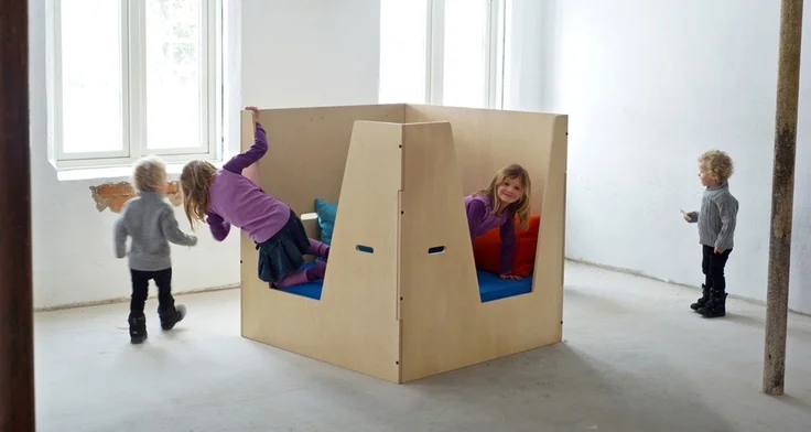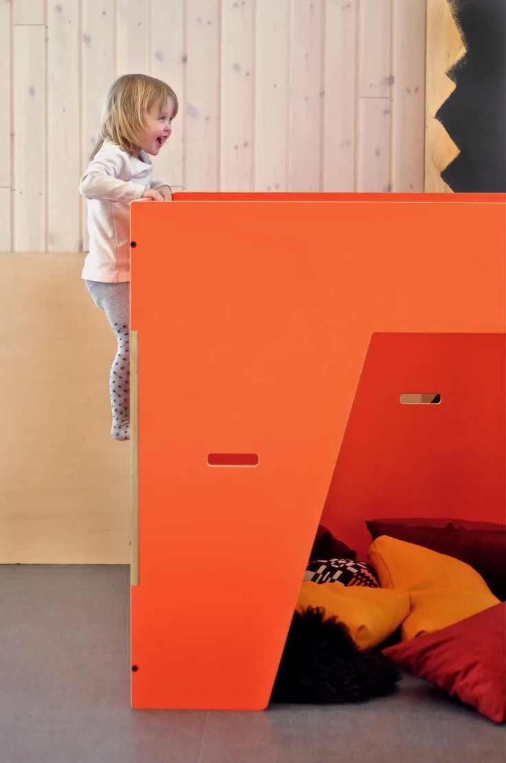 Fungerer like godt begge veier og er romdeleren som lager rom i rommet på flere nivå. Bingen kan bygges i moduler og skaper selvstendige rom og satt sammen en "labyrint" for samtale, lesing, avslapning, undring eller lek. På en enkel måte kan man snu bingen og den transformeres til en hytte, for konstruksjonslek, rollelek, eller hva som ønskes. Puten plasseres utenfor eller inne i hytta.Den er supersmart ved siden av dører da den skjermer fra all trafikk.