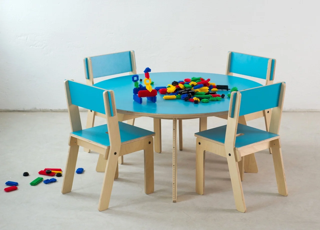 På runde bord er tommestokk integrert på beina.